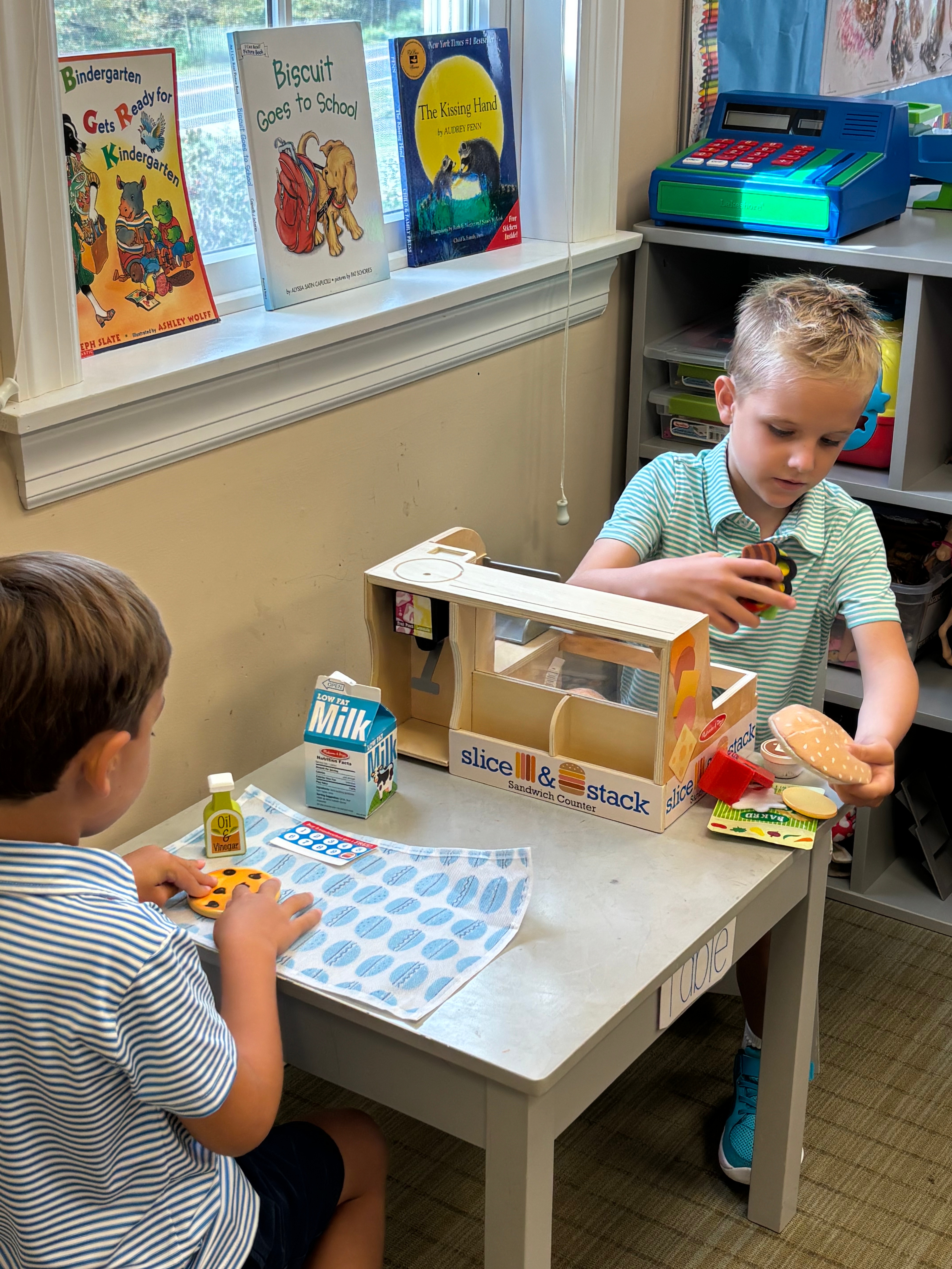 Program, offered three, four, or five mornings per week with an optional Lunch & Learning hour, helps children transition from their parent or guardian into a nurturing classroom where individualized instruction supports confidence, friendships, free play, small-group learning, language development, music, dramatic play, and gross-motor growth through outside play.
