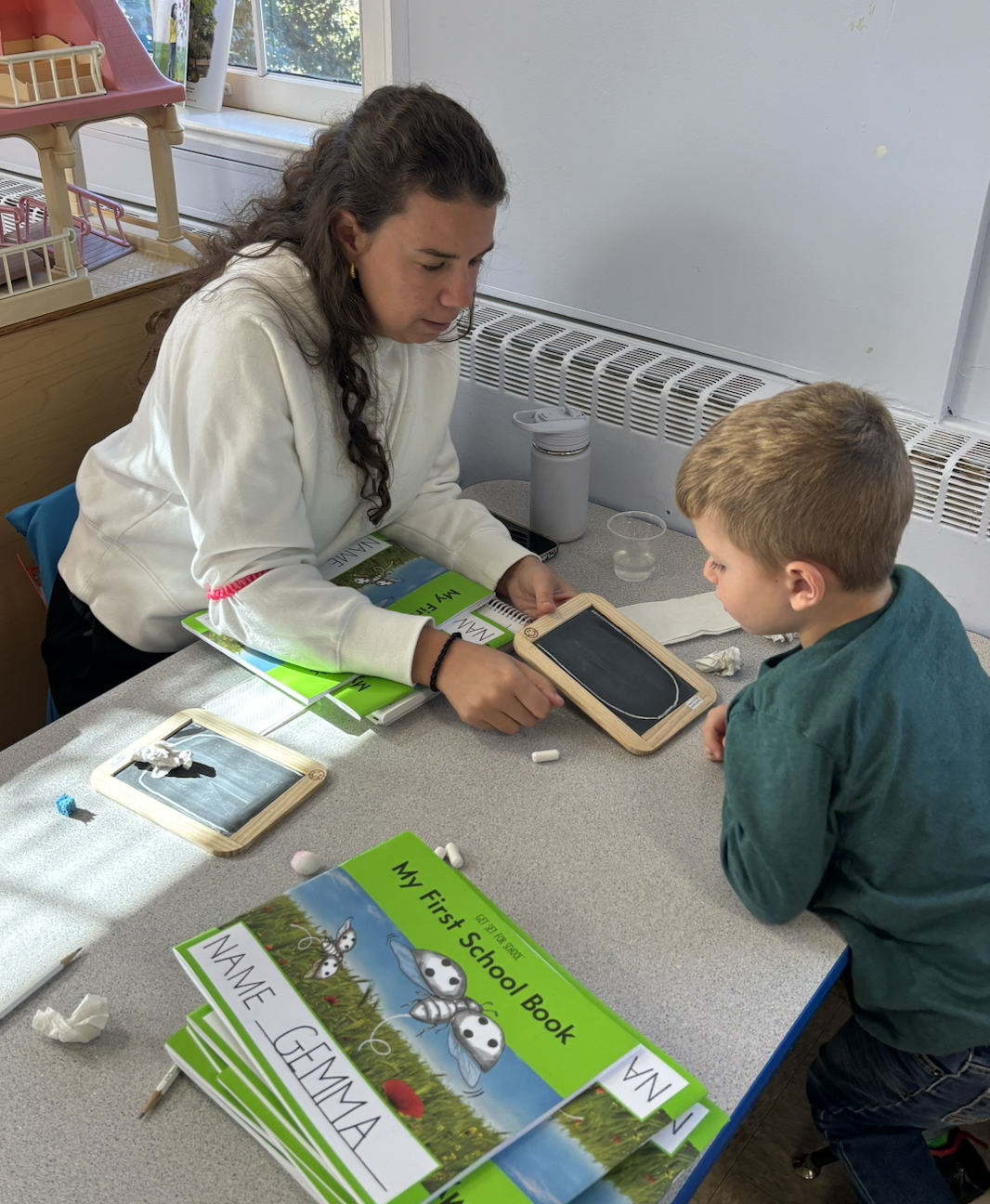 The 4/5-year-old half-day program, offered four or five mornings per week, supports smoother separation from parents or guardians while fostering social growth, cooperation, thematic learning, early literacy through phonetic alphabet introduction and name recognition, math through games, and a love of talking, listening, and reading within a caring classroom community.